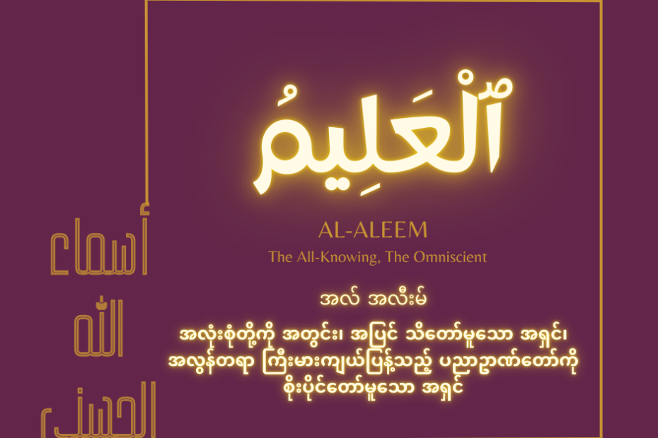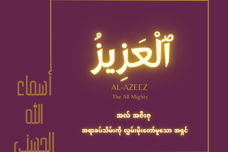 အလ် အဇီးဇ်- အရာခပ်သိမ်းကို လွှမ်းမိုးတော်မူသော အရှင် Al-Azeez” ဆိုတဲ့ နာမတော် က ဘာကိုရည်ညွှန်းပါသလဲ။ “Al-Azeez” ဆိုတဲ့နာမတော်သည် အစ္စလာမ့်သာသနာတွင် အလ္လာဟ် (سُبْحَانَهُ وَتَعَالَى) ၏ တန်ခိုးအကြီးဆုံးနှင့် ကြီးကျယ်ခမ်းနားမှုအရှိဆုံးသော နာမတော်များထဲမှ တစ်ခုဖြစ်ကြောင်းကို ရည်ညွှန်းပါတယ်။ အလ္လာဟ် (سُبْحَانَهُ وَتَعَالَى) သည်အလွန်တရာစွမ်းအားကြီးမားပြီး မည်သည့်အခက်အခဲ၊ အတားအဆီးမျိုးကို မဆို ကျော်လွှားနိုင်စွမ်းရှိခြင်းကို အလေးအနက်ဖော်ဆောင်နေပါတယ်။ “Al-Azzez” ဆိုတဲ့ နာမတော်သည် ကျွန်မတို့အတွက်… Al-Azeez (The All Mighty)